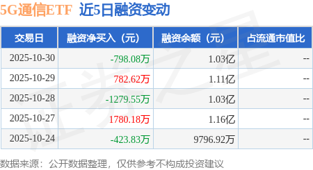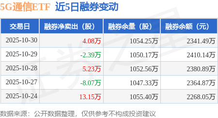 证券之星消息,10月30日,5G通信ETF(515050)融资买入2972.69万元,融资偿还3770.77万元,融资净卖出798.08万元,融资余额1.03亿元。