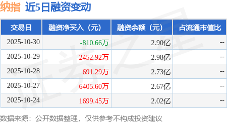 证券之星消息,10月30日,纳指(159659)融资买入1.25亿元,融资偿还1.33亿元,融资净卖出810.66万元,融资余额2.9亿元,近20个交易日中有12个交易日出现融资净买入。