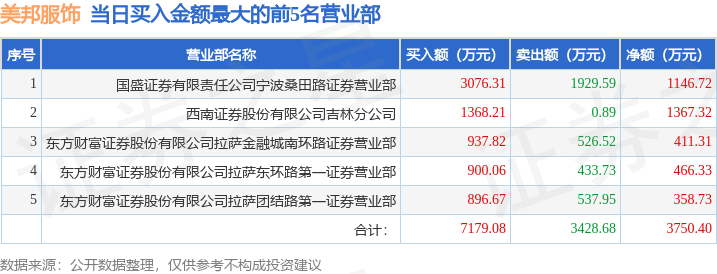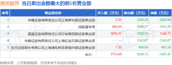 证券之星消息,沪深交易所2025年10月31日公布的交易公开信息显示,美邦服饰(002269)因日跌幅偏离值达到7%的前5只证券登上龙虎榜。此次是近5个交易日内第1次上榜。