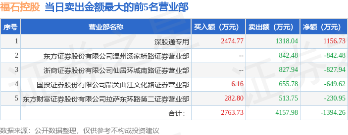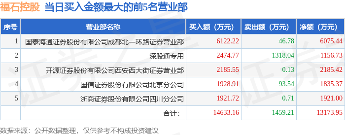证券之星消息,沪深交易所2025年10月31日公布的交易公开信息显示,福石控股(300071)因日涨幅达到15%的前5只证券登上龙虎榜。此次是近5个交易日内第1次上榜。