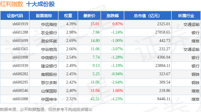 资金流向方面,红利指数(000015)成份股当日主力资金净流入合计1.07亿元,游资资金净流出合计1.94亿元,散户资金净流入合计8732.08万元。成份股资金流向详情见下表: