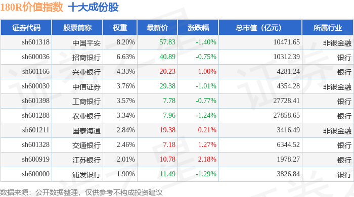 180R价值(000031)指数十大成份股详情如下: