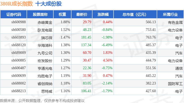 证券之星消息,10月31日,380R成长(000119)指数报收于4320.34点,跌0.74%,成交1780.01亿元,换手率2.38%。当日该指数成份股中,上涨的有134家,鼎胜新材以9.97%的涨幅领涨,下跌的有142家,正帆科技以14.3%的跌幅领跌。