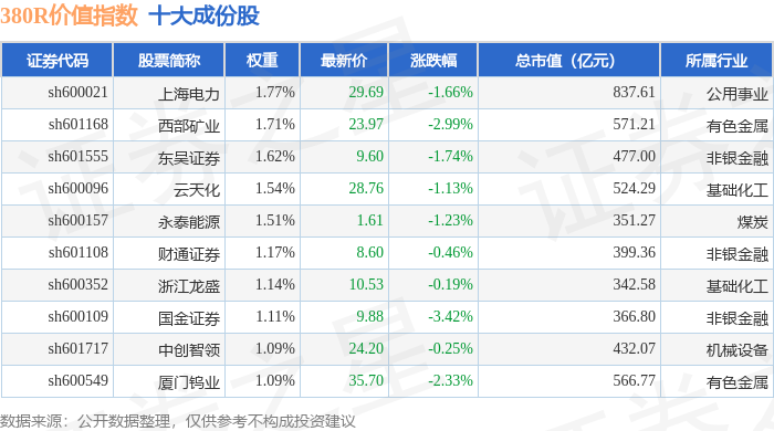 资金流向方面,380R价值(000120)指数成份股当日主力资金净流出合计64.69亿元,游资资金净流入合计11.74亿元,散户资金净流入合计52.94亿元。成份股资金流向详情见下表: