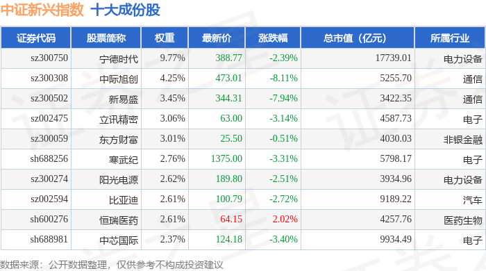 中证新兴(000964)指数十大成份股详情如下: