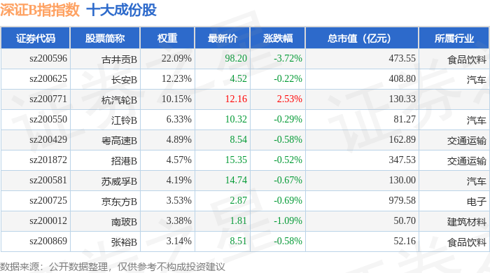 深证B指(399108)指数十大成份股详情如下: