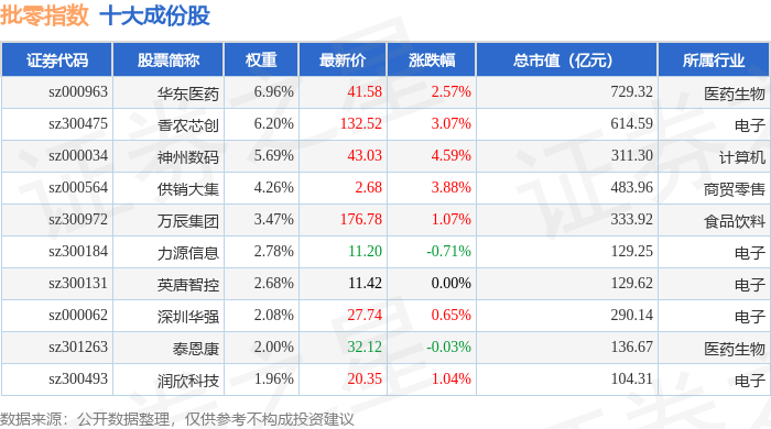 批零指数(399236)十大成份股详情如下: