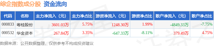 资金流向方面,综企指数(399249)成份股当日主力资金净流入合计3868.87万元,游资资金净流入合计600.97万元,散户资金净流出合计4469.84万元。成份股资金流向详情见下表: