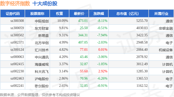 证券之星消息,10月31日,数字经济(399262)指数报收于2771.21点,跌3.25%,成交1747.23亿元,换手率3.04%。当日该指数成份股中,上涨的有14家,深信服以13.62%的涨幅领涨,下跌的有36家,天孚通信以8.14%的跌幅领跌。