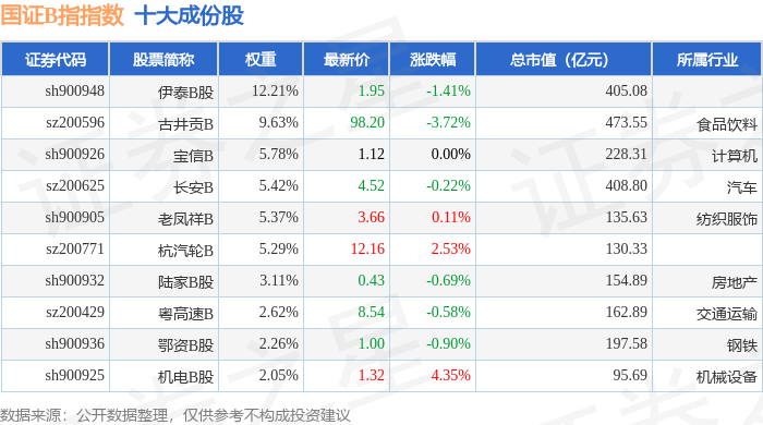 证券之星消息,10月31日,国证B指(399318)指数报收于5271.63点,跌0.47%,成交3.01亿元,换手率0.2%。当日该指数成份股中,上涨的有29家,机电B股以4.35%的涨幅领涨,下跌的有36家,古井贡B以3.72%的跌幅领跌。