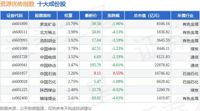 资金流向方面,资源优势(399319)指数成份股当日主力资金净流出合计64.86亿元,游资资金净流入合计12.13亿元,散户资金净流入合计52.73亿元。成份股资金流向详情见下表: