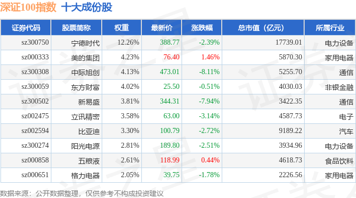 证券之星消息,10月31日,深证100(399330)指数报收于5877.96点,跌1.74%,成交2894.28亿元,换手率1.43%。当日该指数成份股中,上涨的有43家,古井贡酒以6.38%的涨幅领涨,下跌的有55家,鹏鼎控股以9.61%的跌幅领跌。