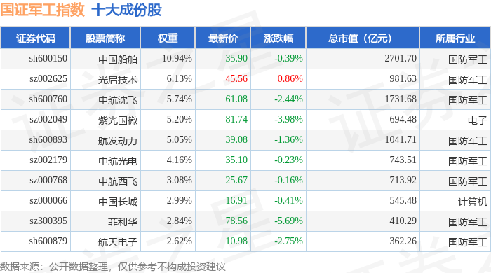 证券之星消息,10月31日,国证军工(399368)指数报收于7764.04点,跌1.23%,成交367.89亿元,换手率1.66%。当日该指数成份股中,上涨的有14家,光威复材以1.48%的涨幅领涨,下跌的有34家,菲利华以5.69%的跌幅领跌。