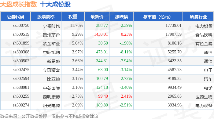 资金流向方面,大盘成长(399372)指数成份股当日主力资金净流出合计188.3亿元,游资资金净流入合计74.36亿元,散户资金净流入合计113.94亿元。成份股资金流向详情见下表: