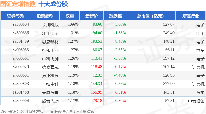 证券之星消息,10月31日,国证定增(399428)指数报收于4266.71点,涨0.48%,成交646.7亿元,换手率2.71%。当日该指数成份股中,上涨的有56家,广生堂以10.99%的涨幅领涨,下跌的有40家,胜宏科技以10.53%的跌幅领跌。