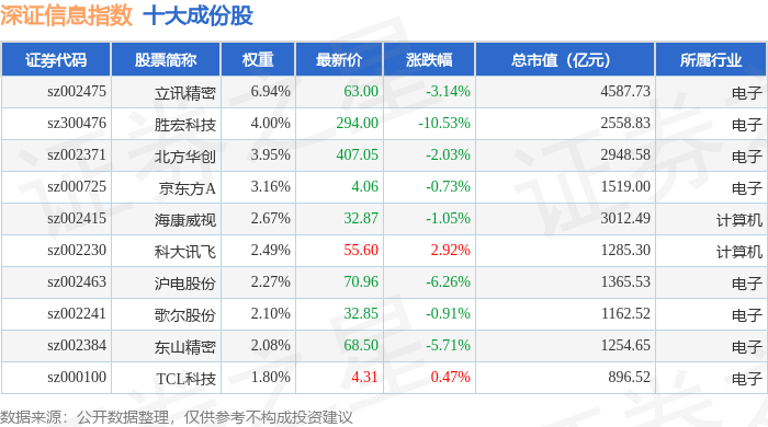 深证信息(399620)指数十大成份股详情如下: