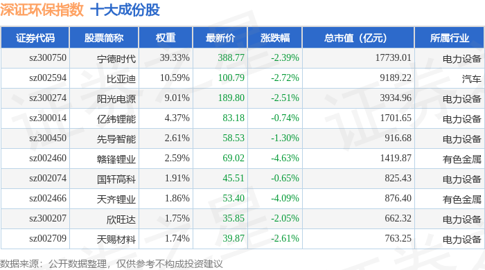 证券之星消息,10月31日,深证环保(399638)指数报收于7788.42点,跌1.83%,成交1323.29亿元,换手率2.64%。当日该指数成份股中,上涨的有11家,恩捷股份以10.0%的涨幅领涨,下跌的有29家,赣锋锂业以4.63%的跌幅领跌。