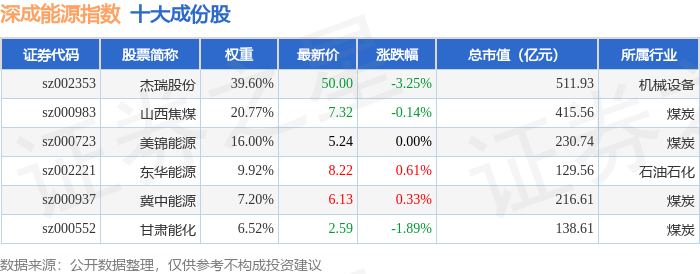 深成能源(399680)指数十大成份股详情如下: