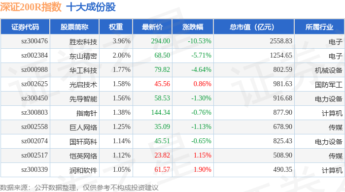 深证200R(399679)指数十大成份股详情如下: