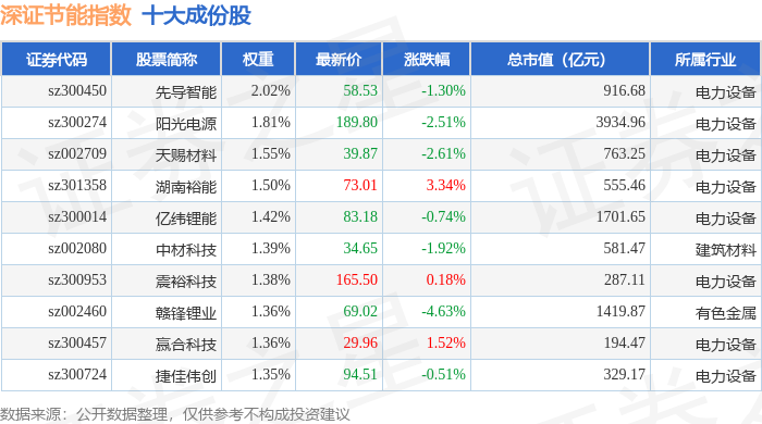 证券之星消息,10月31日,深证节能(399695)指数报收于2943.93点,跌0.04%,成交1916.82亿元,换手率3.12%。当日该指数成份股中,上涨的有44家,恩捷股份以10.0%的涨幅领涨,下跌的有53家,万润科技以5.16%的跌幅领跌。