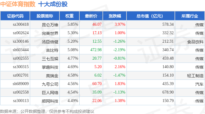 资金流向方面,中证体育(399804)指数成份股当日主力资金净流出合计2.94亿元,游资资金净流出合计574.76万元,散户资金净流入合计3.0亿元。成份股资金流向详情见下表: