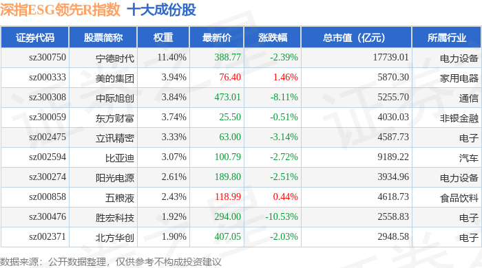 深指ESG领先R(470029)指数十大成份股详情如下: