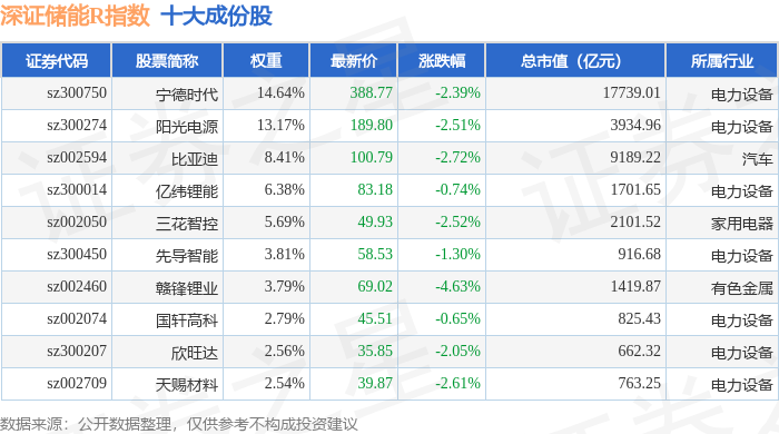 资金流向方面,深证储能R(470036)指数成份股当日主力资金净流出合计68.05亿元,游资资金净流入合计3972.97万元,散户资金净流入合计67.65亿元。成份股资金流向详情见下表: