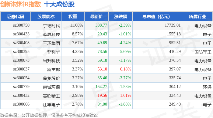 资金流向方面,创新材料R(470039)指数成份股当日主力资金净流出合计29.09亿元,游资资金净流入合计1.65亿元,散户资金净流入合计27.44亿元。成份股资金流向详情见下表: