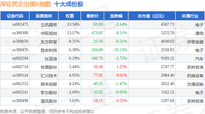 资金流向方面,深证民企治理R(470058)指数成份股当日主力资金净流出合计141.0亿元,游资资金净流入合计53.25亿元,散户资金净流入合计87.76亿元。成份股资金流向详情见下表: