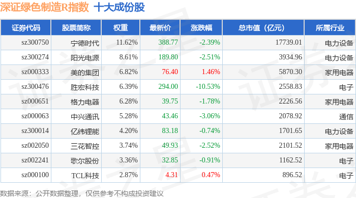 深证绿色制造R(470069)指数十大成份股详情如下: