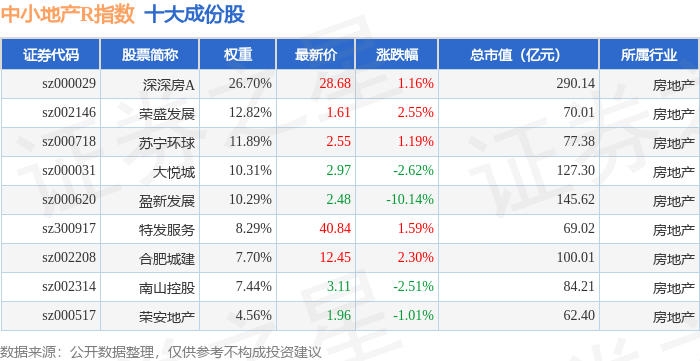 中小地产R(471002)指数十大成份股详情如下: