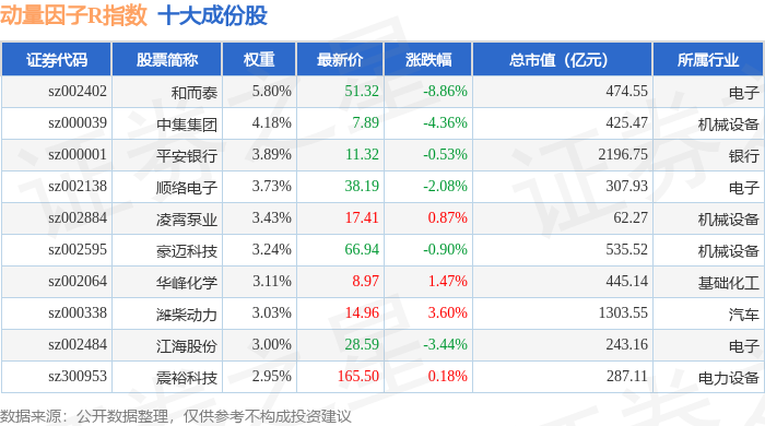 证券之星消息,10月31日,动量因子R(480057)指数报收于2837.3点,跌1.49%,成交549.36亿元,换手率2.27%。当日该指数成份股中,上涨的有27家,大中矿业以9.98%的涨幅领涨,下跌的有22家,鼎泰高科以10.68%的跌幅领跌。