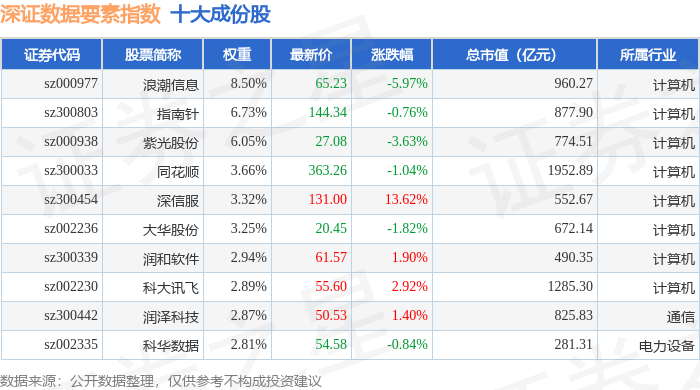 深证数据要素(970053)指数十大成份股详情如下: