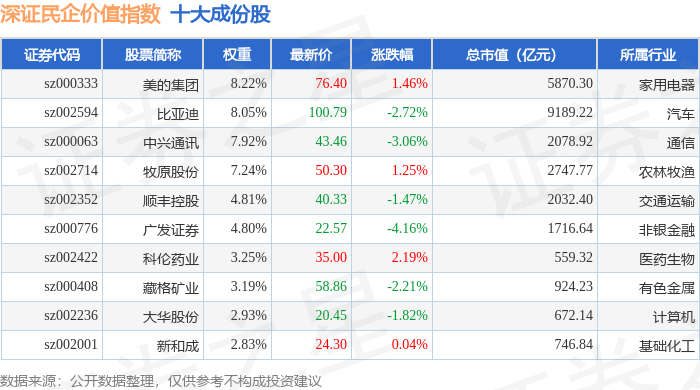 资金流向方面,深证民企价值(970072)指数成份股当日主力资金净流出合计15.66亿元,游资资金净流入合计5.83亿元,散户资金净流入合计9.83亿元。成份股资金流向详情见下表: