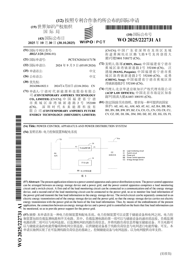 证券之星消息,根据企查查数据显示宁德时代(300750)公布了一项国际专利申请,专利名为“电力控制装置和配电系统”,专利申请号为PCT/CN2024/117178,国际公布日为2025年10月30日。