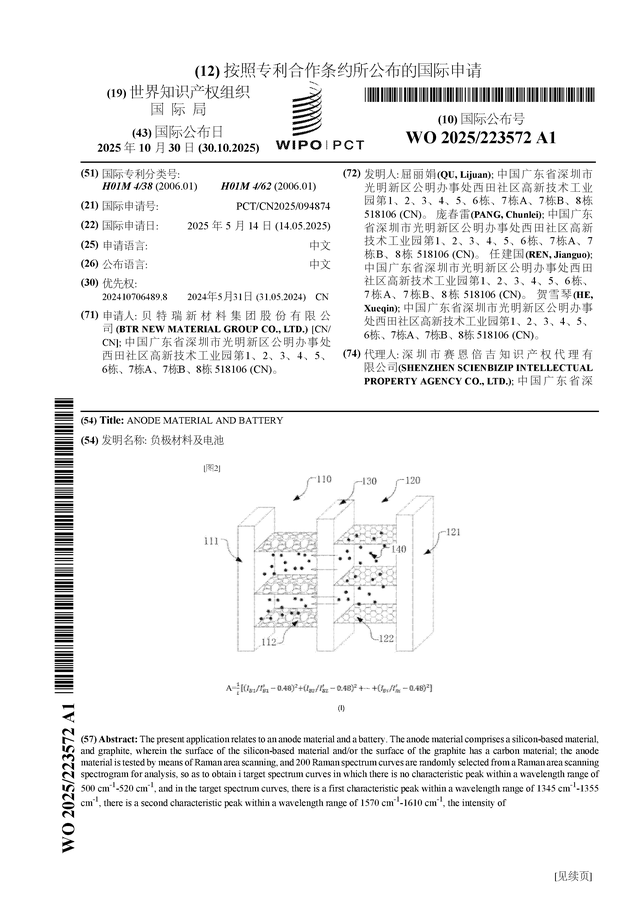 证券之星消息,根据企查查数据显示贝特瑞(920185)公布了一项国际专利申请,专利名为“负极材料及电池”,专利申请号为PCT/CN2025/094874,国际公布日为2025年10月30日。