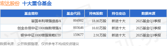 持有宏达股份最多的基金为富国丰利增强债券A,目前规模为6.7亿元,最新净值1.3805(10月31日),较上一交易日上涨0.04%,近一年上涨11.13%。该基金现任基金经理为陈斯扬。
