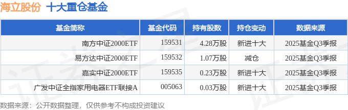 持有海立股份最多的基金为南方中证2000ETF,目前规模为5.43亿元,最新净值1.3475(10月31日),较上一交易日上涨1.05%,近一年上涨33.78%。该基金现任基金经理为李佳亮。