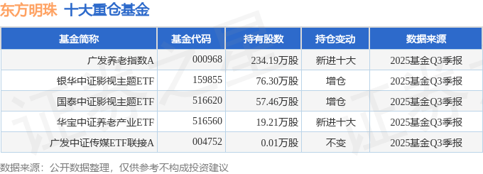 持有东方明珠最多的基金为广发养老指数A,目前规模为13.95亿元,最新净值0.9661(10月31日),较上一交易日上涨0.82%,近一年上涨9.76%。该基金现任基金经理为曹世宇。