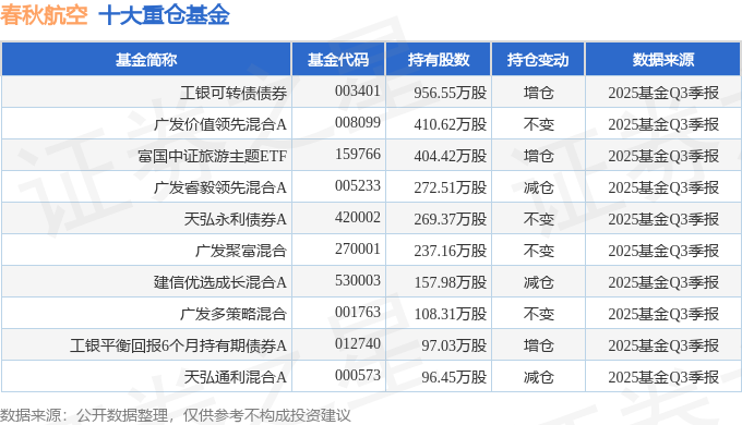 持有春秋航空最多的基金为工银可转债债券,目前规模为51.69亿元,最新净值1.8652(10月30日),较上一交易日上涨0.25%,近一年上涨16.1%。该基金现任基金经理为黄诗原。