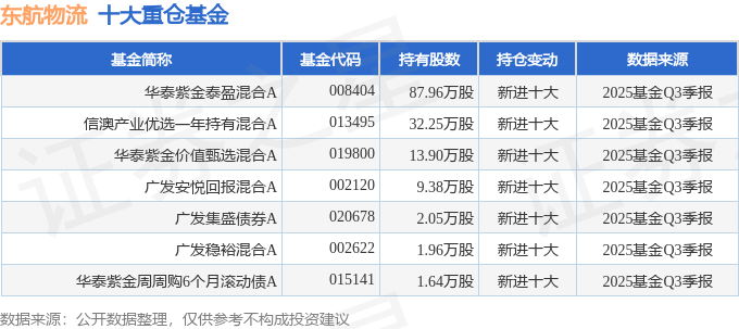 持有东航物流最多的基金为华泰紫金泰盈混合A,目前规模为0.89亿元,最新净值1.4553(10月31日),较上一交易日下跌0.49%,近一年上涨15.23%。该基金现任基金经理为查晓磊。