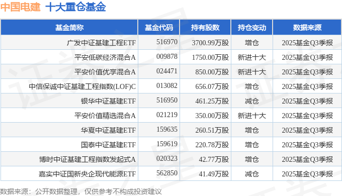 持有中国电建最多的基金为广发中证基建工程ETF,目前规模为26.12亿元,最新净值1.1988(10月31日),较上一交易日下跌1.54%,近一年上涨7.49%。该基金现任基金经理为霍华明。