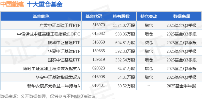 持有中国能建最多的基金为广发中证基建工程ETF,目前规模为26.12亿元,最新净值1.1988(10月31日),较上一交易日下跌1.54%,近一年上涨7.49%。该基金现任基金经理为霍华明。