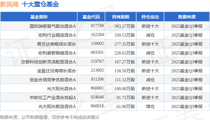 持有新凤鸣最多的基金为国投瑞银景气驱动混合A,目前规模为2.16亿元,最新净值1.4771(10月31日),较上一交易日下跌0.71%,近一年上涨32.48%。该基金现任基金经理为汤龑。