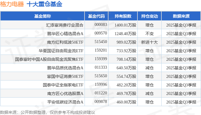 持有格力电器最多的基金为汇添富消费行业混合,目前规模为99.4亿元,最新净值5.221(10月31日),较上一交易日上涨0.13%,近一年上涨2.38%。该基金现任基金经理为胡昕炜。