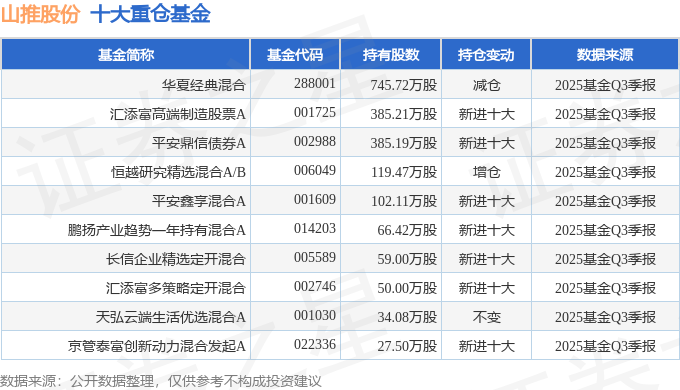 持有山推股份最多的基金为华夏经典混合,目前规模为17.91亿元,最新净值2.297(10月31日),较上一交易日下跌0.17%,近一年上涨20.03%。该基金现任基金经理为刘心任。