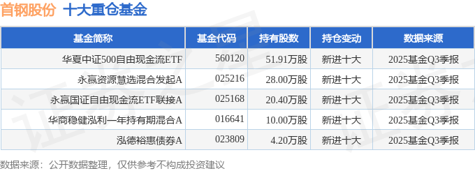 持有首钢股份最多的基金为华夏中证500自由现金流ETF,目前规模为0.56亿元,最新净值1.1528(10月31日),较上一交易日下跌0.84%。该基金现任基金经理为杨斯琪。