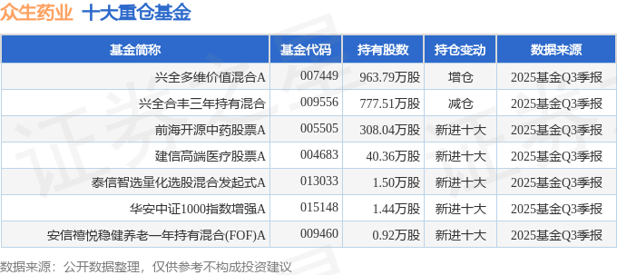 持有众生药业最多的基金为兴全多维价值混合A,目前规模为43.0亿元,最新净值2.5633(10月30日),较上一交易日下跌1.52%,近一年上涨48.24%。该基金现任基金经理为杨世进。