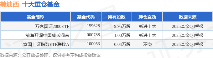 持有美迪西最多的基金为万家国证2000ETF,目前规模为12.86亿元,最新净值1.3041(10月31日),较上一交易日上涨0.49%,近一年上涨29.87%。该基金现任基金经理为杨坤。