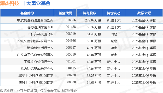 持有源杰科技最多的基金为中航机遇领航混合发起A,目前规模为18.81亿元,最新净值3.0187(10月31日),较上一交易日下跌5.37%,近一年上涨129.3%。该基金现任基金经理为韩浩。